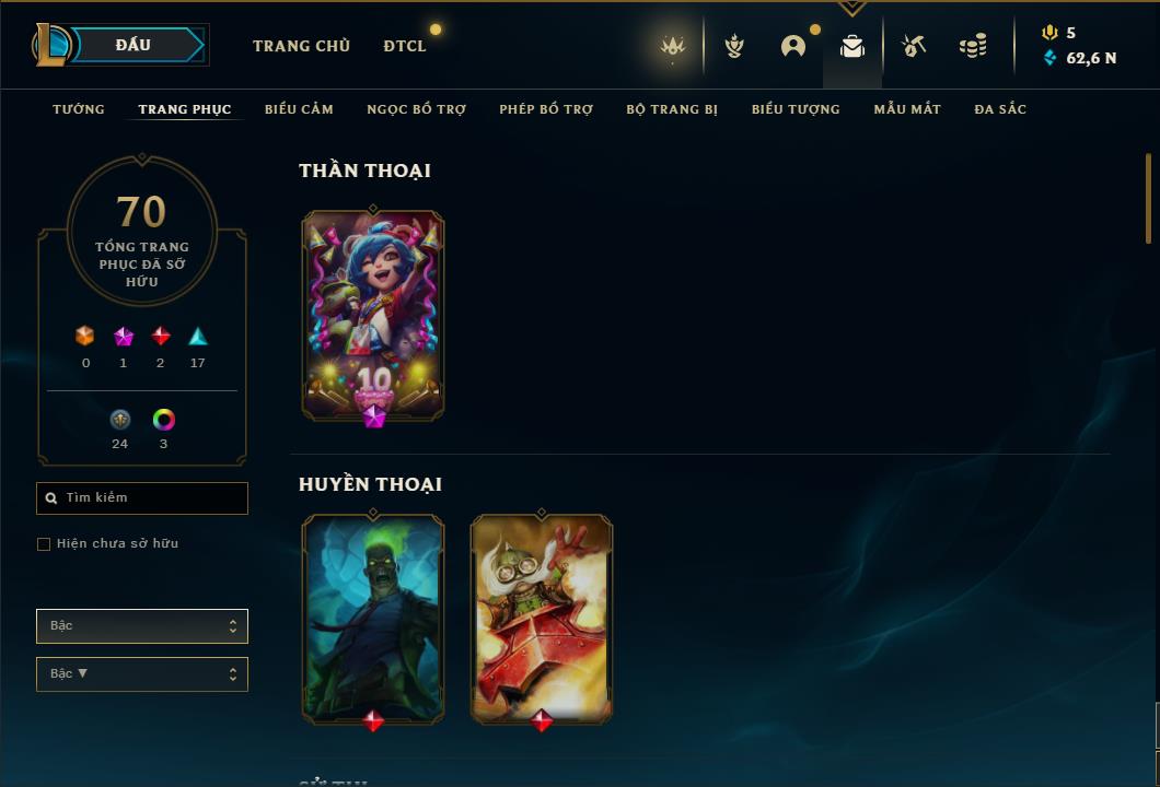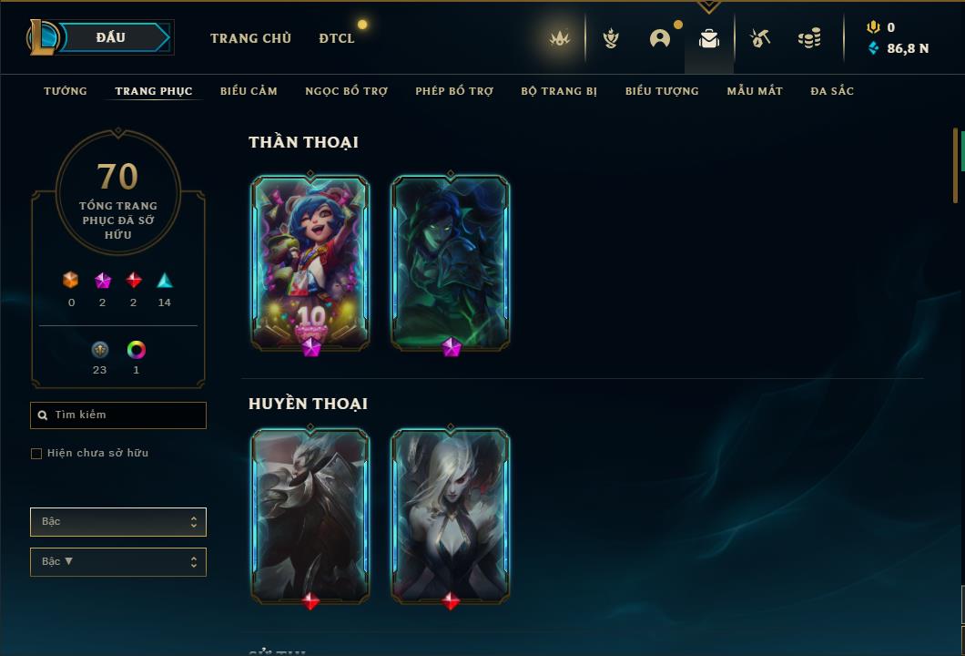 Tất cả tài khoản ĐTCL và LMHT trên web là tài khoản