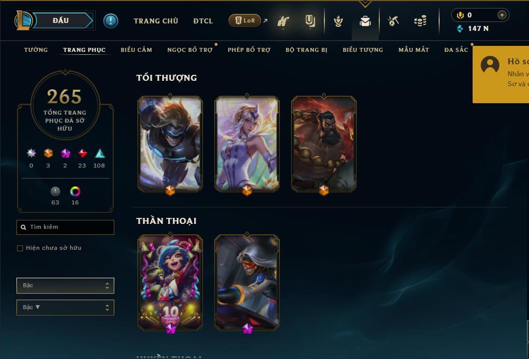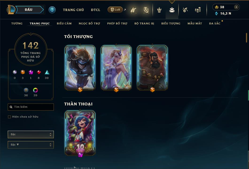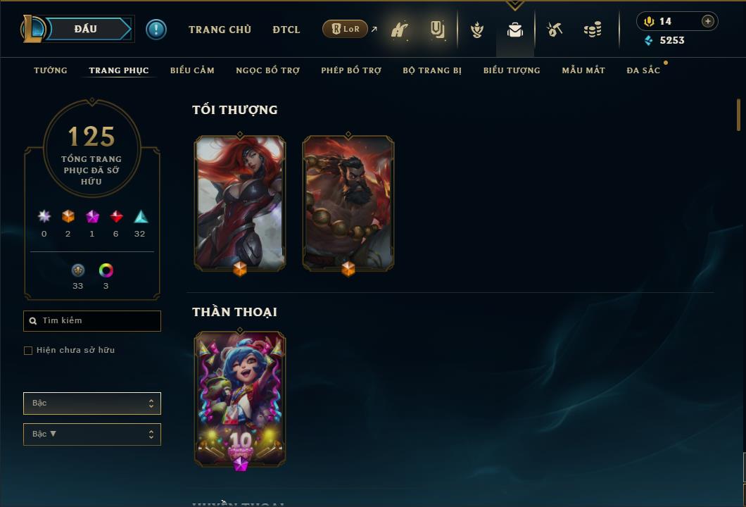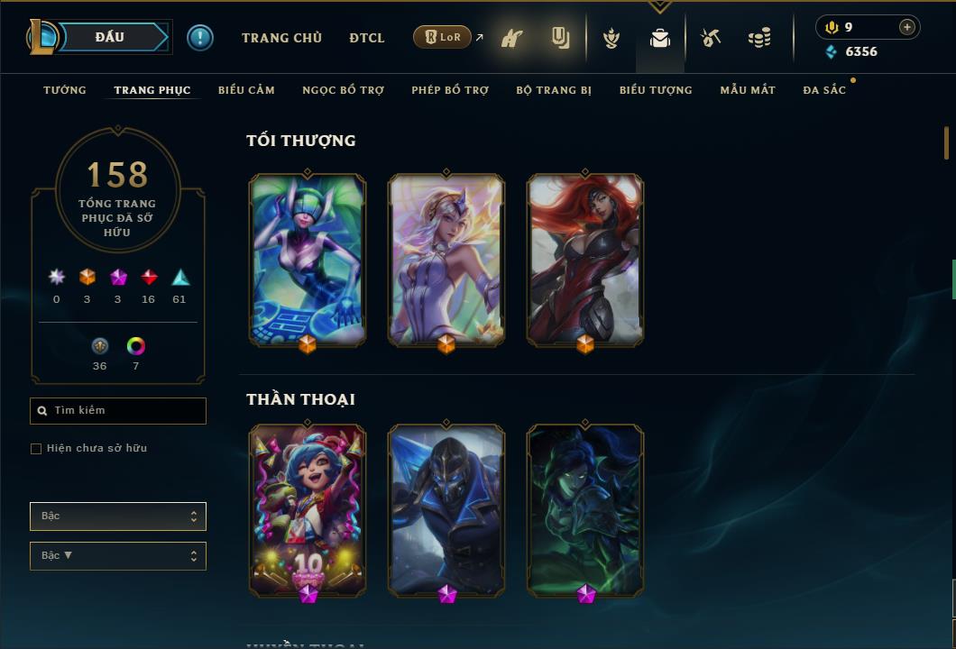 Tất cả tài khoản ĐTCL và LMHT trên web là tài khoản