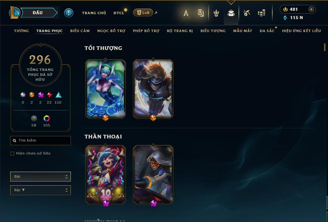 Tất cả tài khoản ĐTCL và LMHT trên web là tài khoản