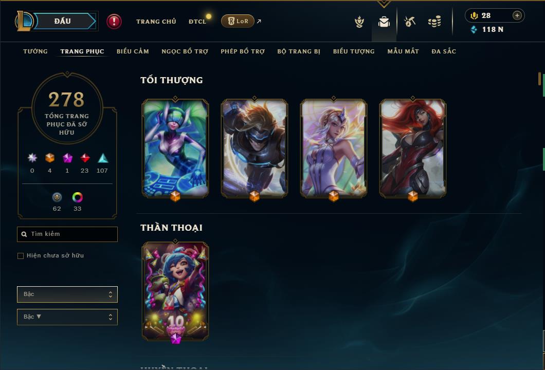 Tất cả tài khoản ĐTCL và LMHT trên web là tài khoản
